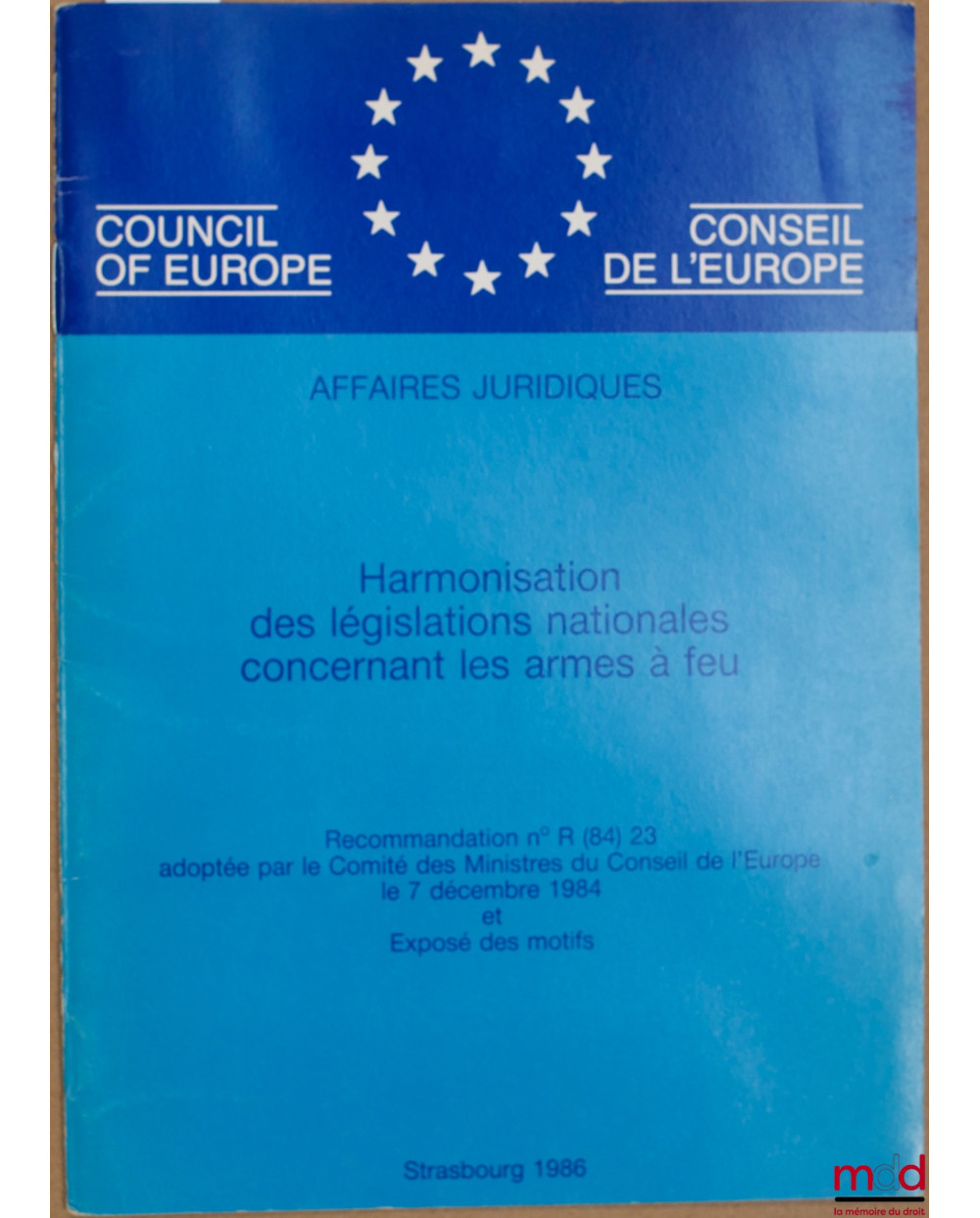 HARMONISATION DES LÉGISLATIONS NATIONALES CONCERNANT LES ARMES À FEU, Recommandation n° R (84) 23 adoptée par le Comité des Ministres du Conseil de l’Europe le 7 déc. 1984 et Exposé des motifs, série Affaires juridiques
