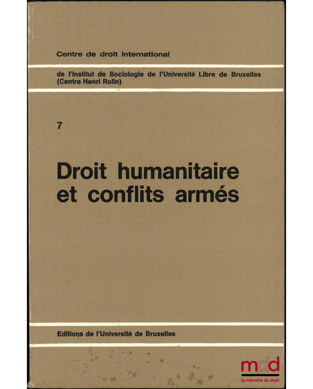 DROIT HUMANITAIRE ET CONFLITS ARMÉS, Centre de droit international de l’Institut de Sociologie de l’Université Libre de Bruxelles (Centre Henri Rolin), Université libre de Bruxelles, Colloque des 28, 29 et 30 janvier 1970
