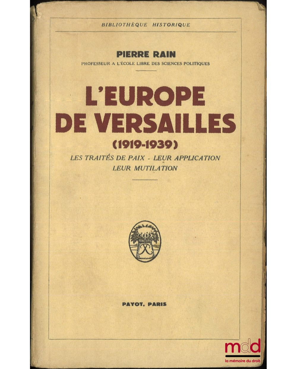 L’EUROPE DE VERSAILLES (1919-1939), Les Traités de Paix - Leur application - Leur mutilation