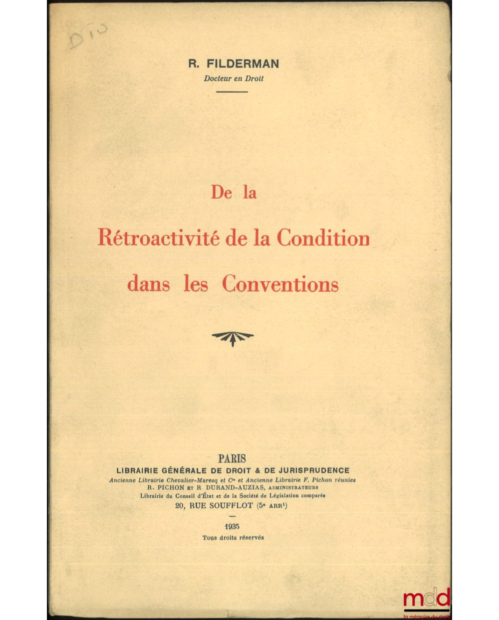 DE LA RÉTROACTIVITÉ DE LA CONDITION DANS LES CONVENTIONS