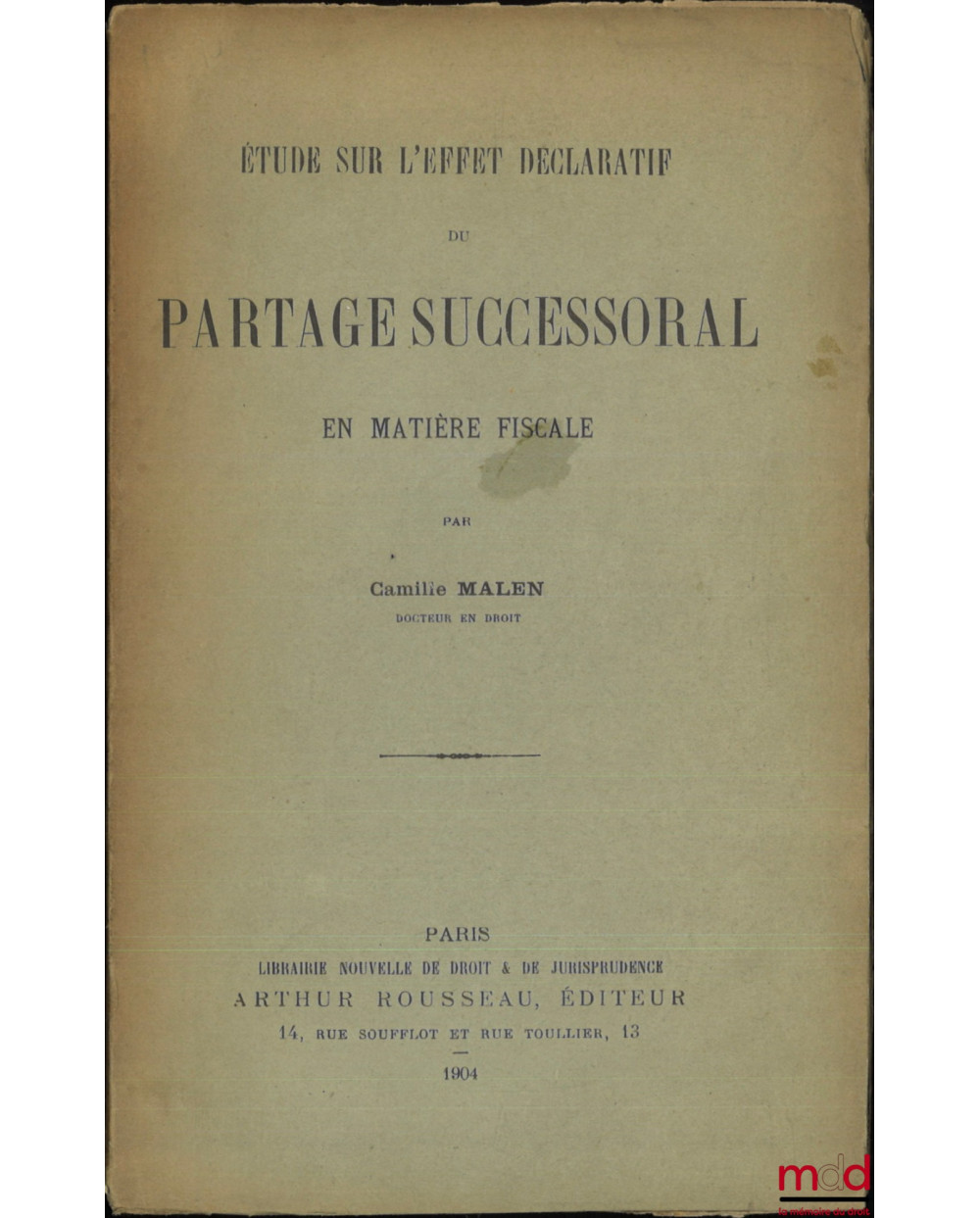 ÉTUDE SUR L’EFFET DÉCLARATIF DU PARTAGE SUCCESSORAL EN MATIÈRE FISCALE