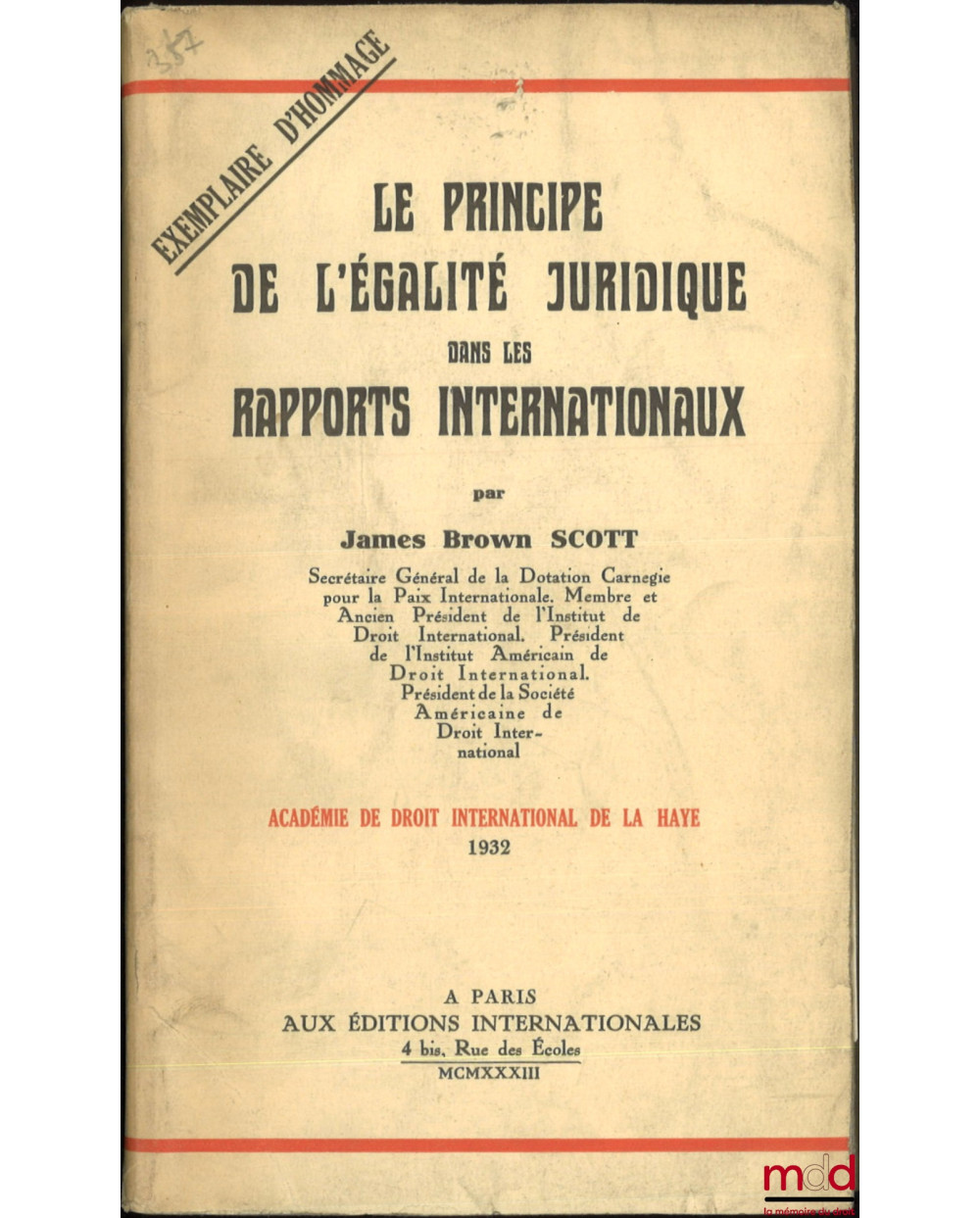 LE PRINCIPE DE L’ÉGALITÉ JURIDIQUE DANS LES RAPPORTS INTERNATIONAUX, Académie de droit international de La Haye, 1932