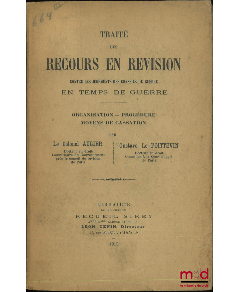 Editeur : Recueil Sirey