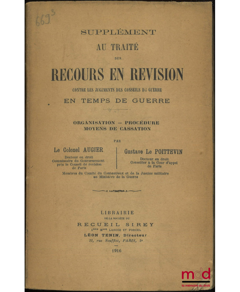 TRAITÉ DES RECOURS EN RÉVISION Contre les jugements des conseils de guerre en temps de guerre, Organisation - Procédure - Moyen de cassation, [Avec] Supplément