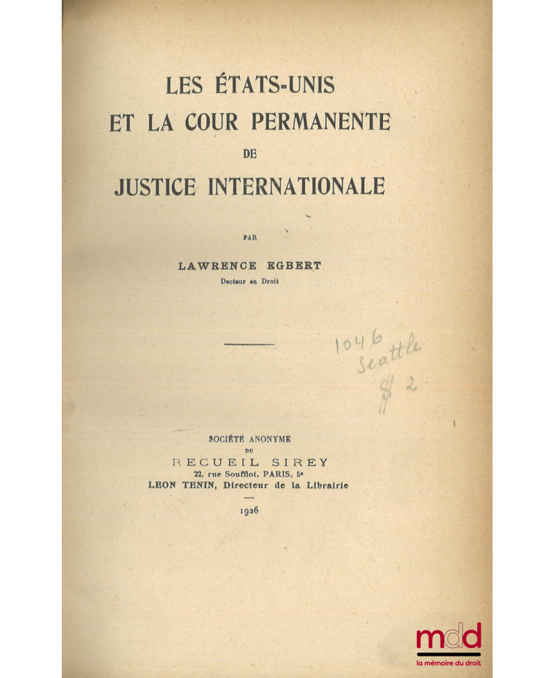 LES ÉTATS-UNIS ET LA COUR PERMANENTE DE JUSTICE INTERNATIONALE