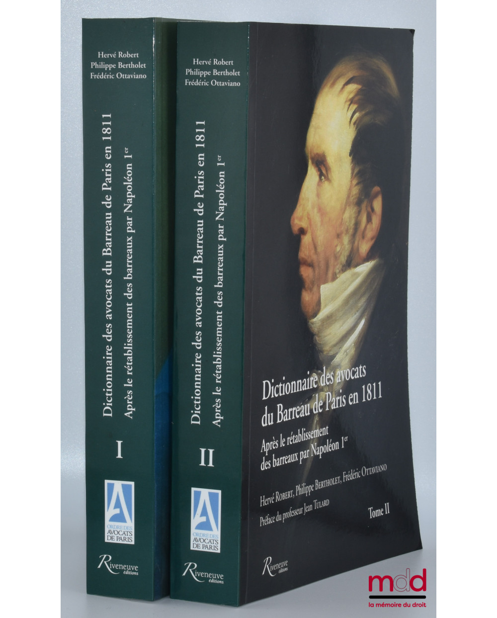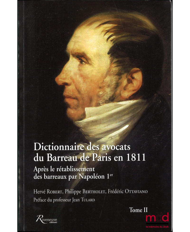 DICTIONNAIRE DES AVOCATS DU BARREAU DE PARIS EN 1811, Après le rétablissement des barreaux par Napoléon Ier, Préface de Jean Tulard, Avant-propos de Jean Castelain et Jean-Yves Le Borgne