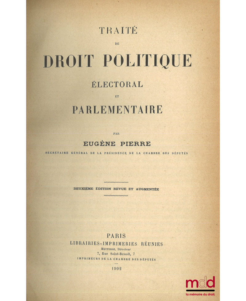 TRAITÉ DE DROIT POLITIQUE ÉLECTORAL ET PARLEMENTAIRE, 2e éd. revue et augmentée
