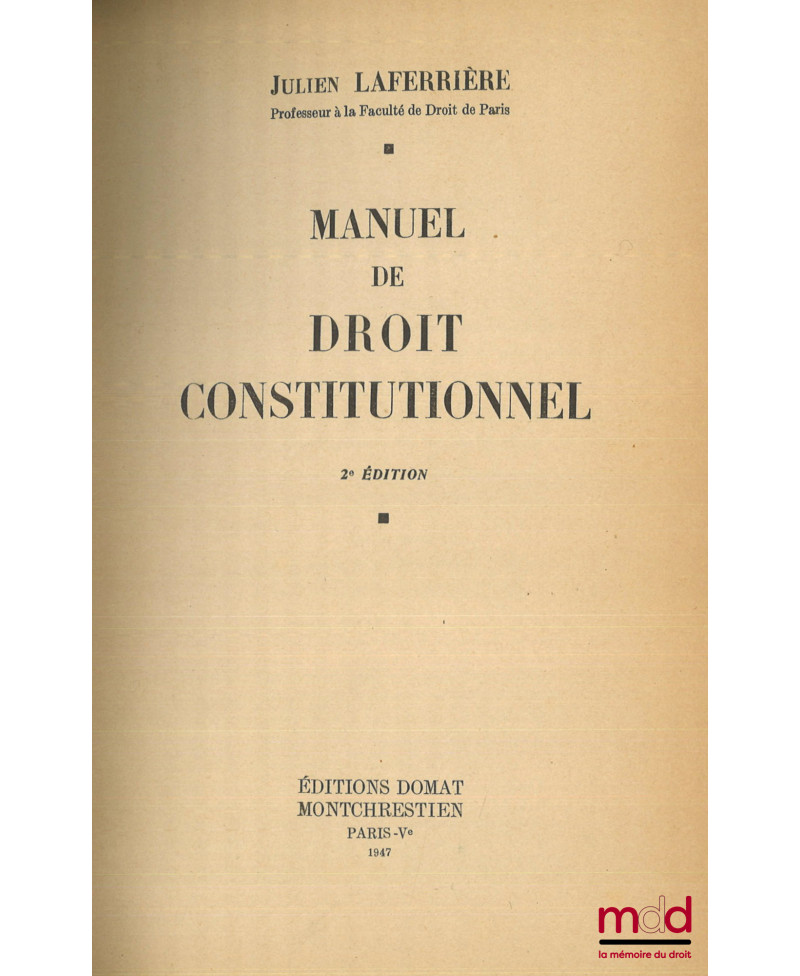 MANUEL DE DROIT CONSTITUTIONNEL, 2e éd.