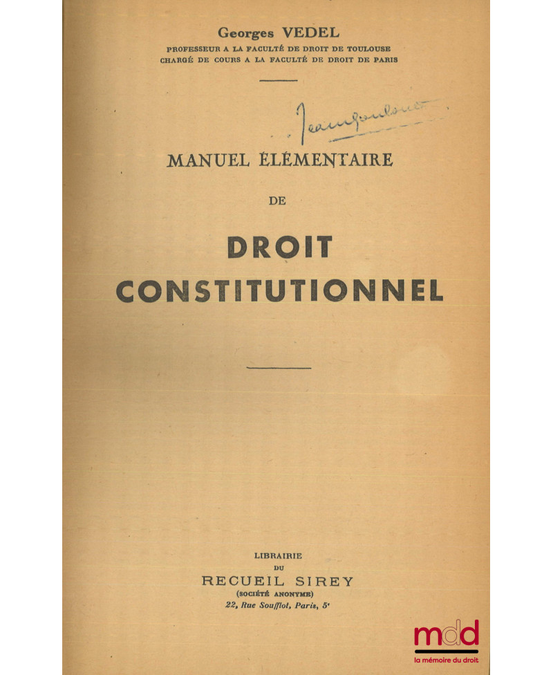 MANUEL ÉLÉMENTAIRE DE DROIT CONSTITUTIONNEL