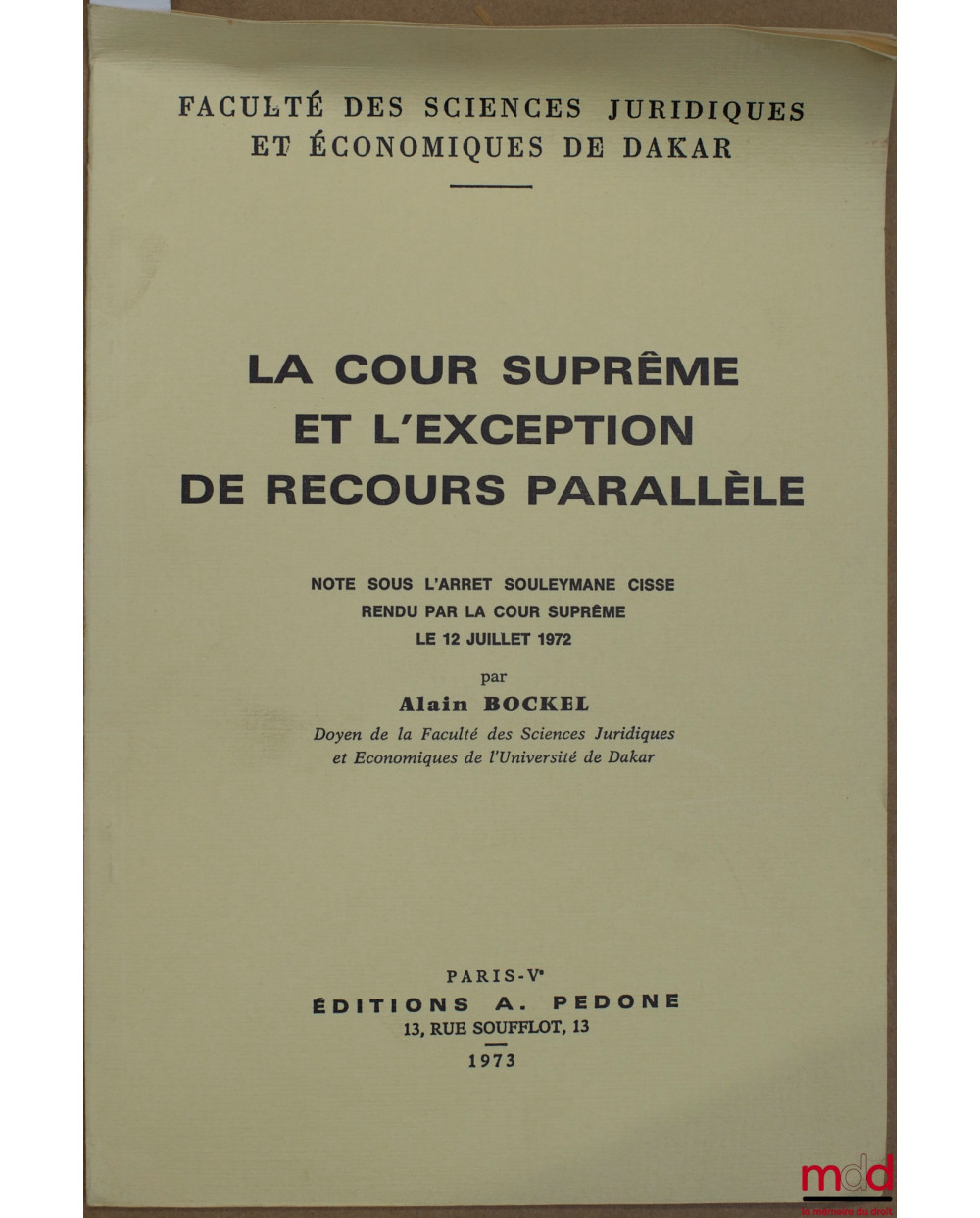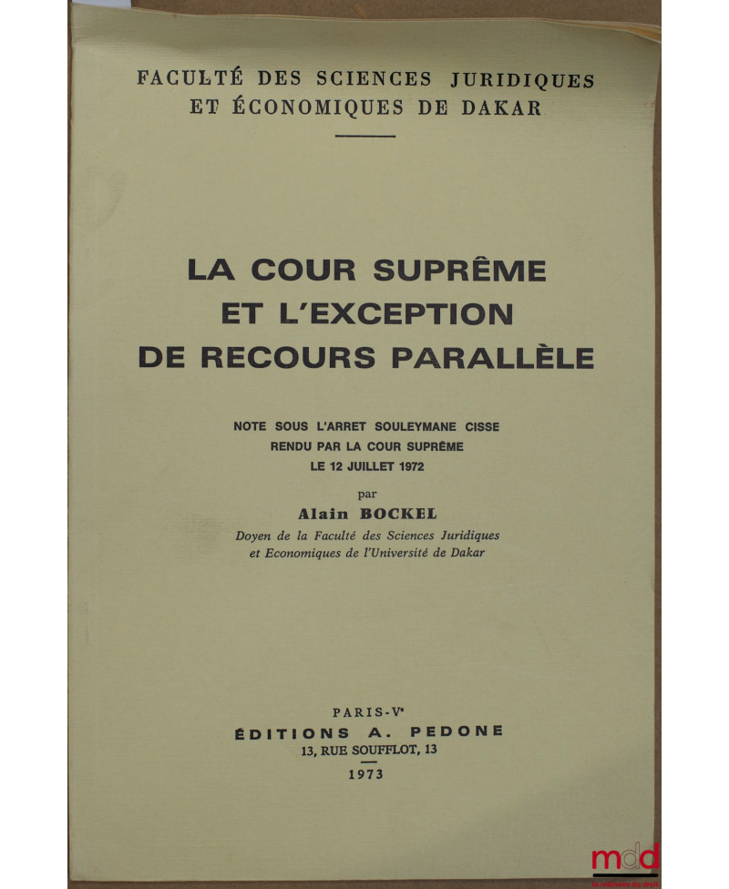 LA COUR SUPRÊME ET L’EXCEPTION DE RECOURS PARALLÈLE, Note sous l’arrêt Souleymane Cisse rendu par la Cour suprême le 12 juillet 1972, Fac. des sc. jur. et éco. de Dakar