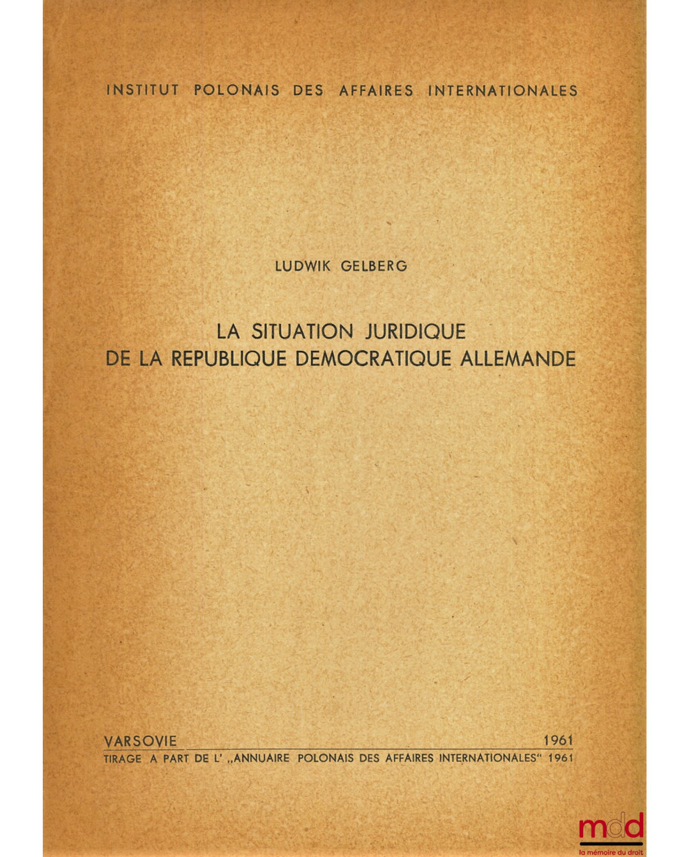 LA SITUATION JURIDIQUE DE LA RÉPUBLIQUE DÉMOCRATIQUE ALLEMANDE, extrait de l’Annuaire polonais des affaires internationales 1961