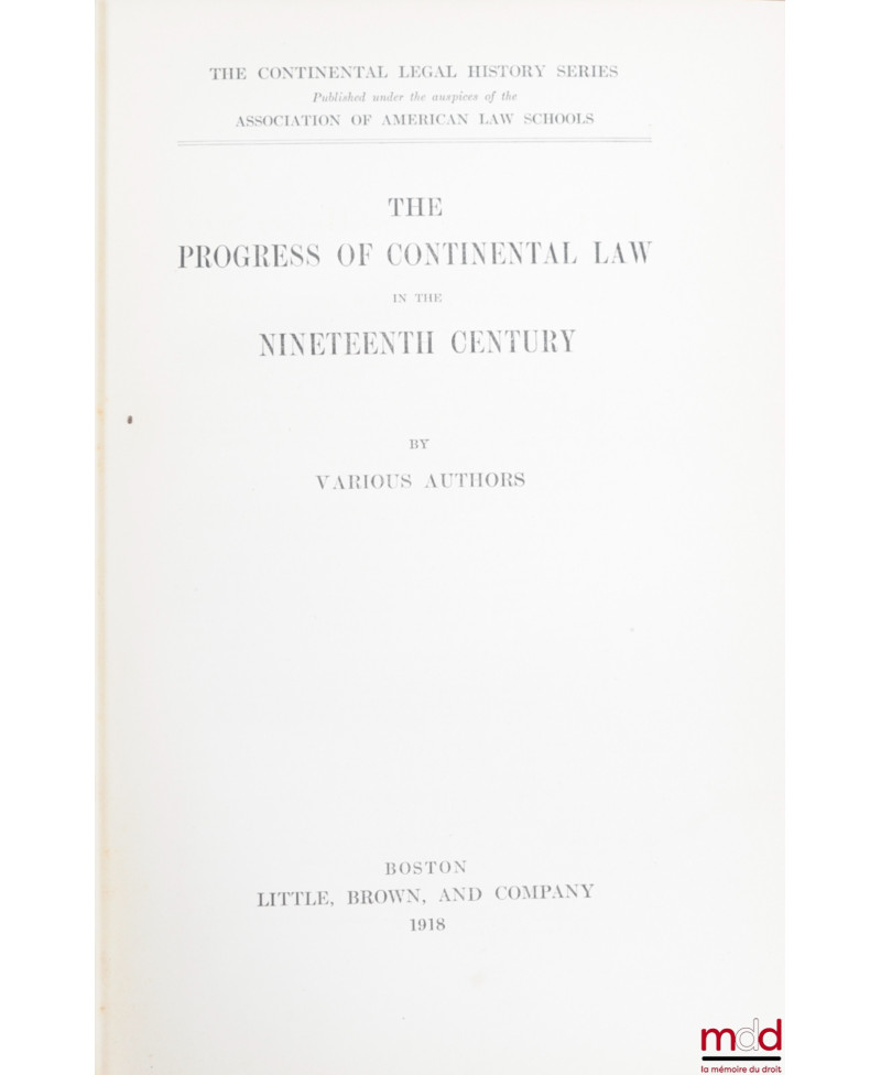 THE PROGRESS OF CONTINENTAL LAW IN THE NINETEENTH CENTURY, coll. The Continental Legal History Series published under the auspices of the Association of American Law Schools