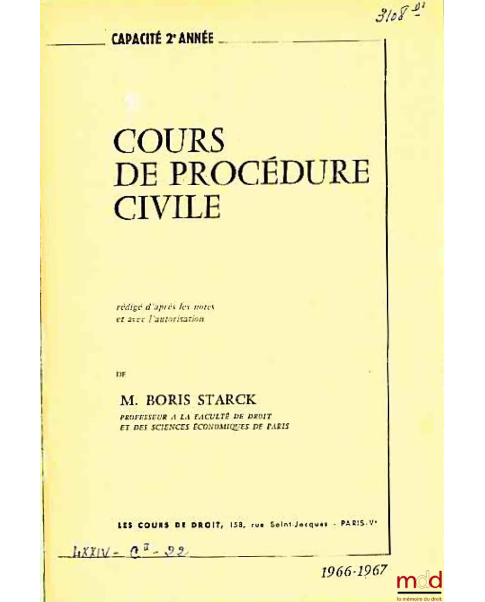 COURS DE PROCÉDURE CIVILE, Capacité 2ème année, 1966-1967