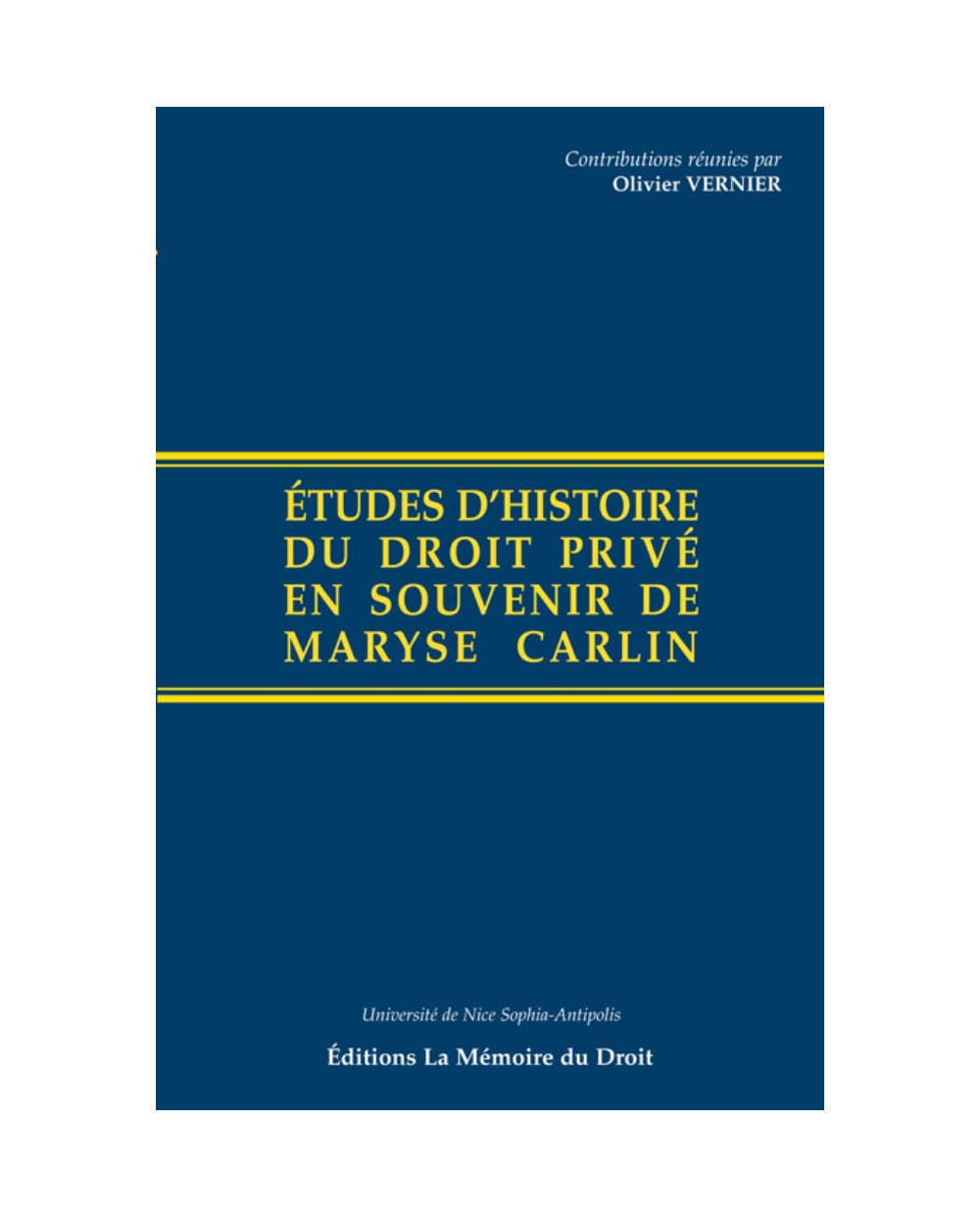 ÉTUDES D’HISTOIRE DU DROIT PRIVÉ EN SOUVENIR DE MARYSE CARLINContributions réunies par Olivier Vernier, Michel Bottin et Marc Ortolani, avec le concours de l’Université de Nice-Sophia Antipolis