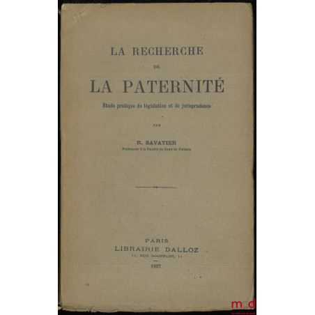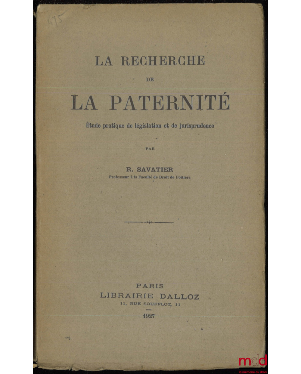 LA RECHERCHE DE LA PATERNITÉ. Étude pratique de législation et de jurisprudence