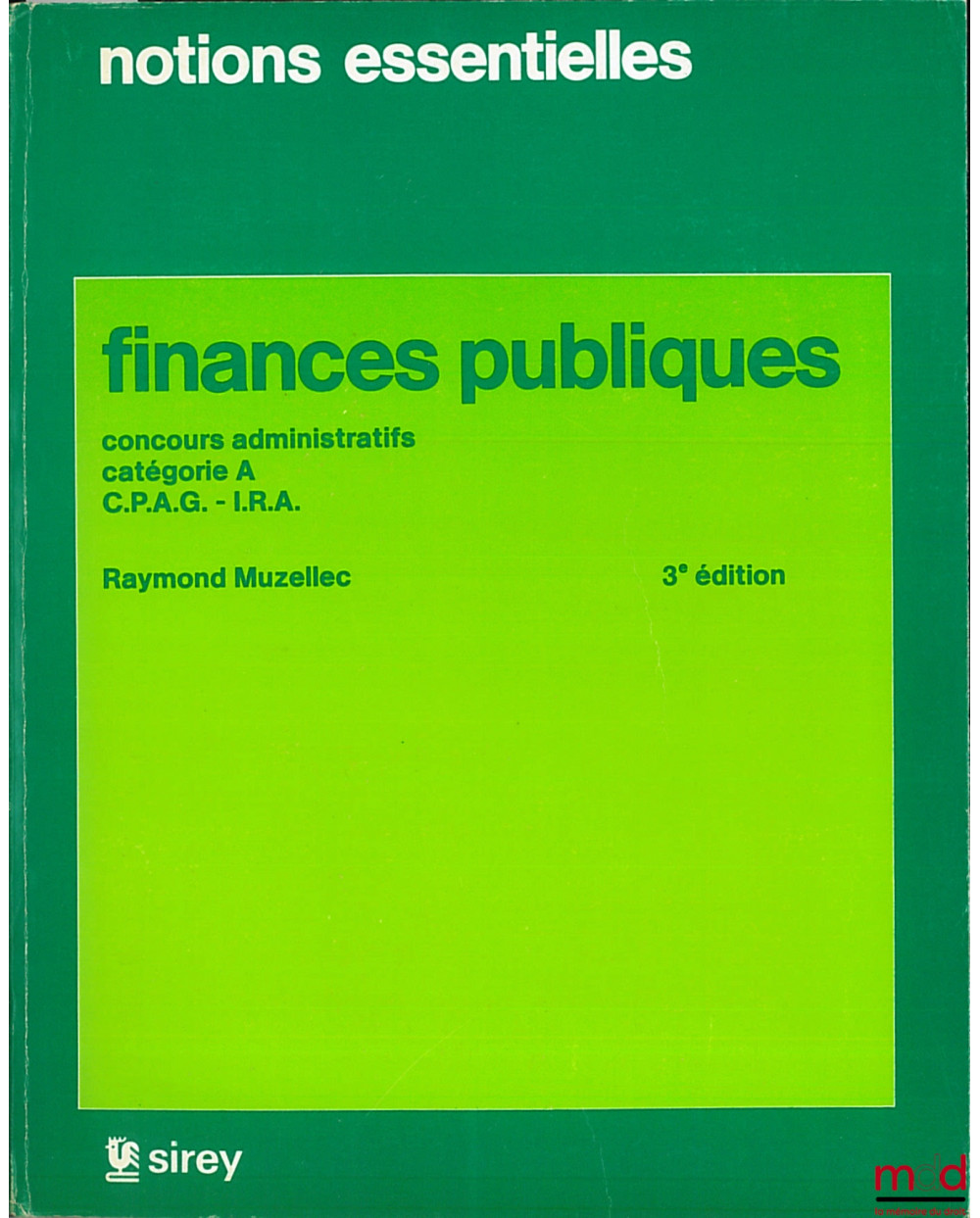 FINANCES PUBLIQUES, Concours administratifs catégorie A, C.P.A.G. - I.R.A., 3ème éd., coll. Notions essentielles