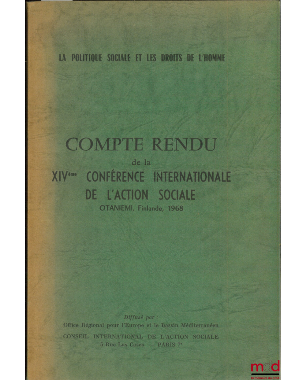 LA POLITIQUE SOCIALE ET LES DROITS DE L’HOMME. Compte-rendu de la XIVème Conférence Internationale de l’Action Sociale, Otaniemi, Finlande, 1968