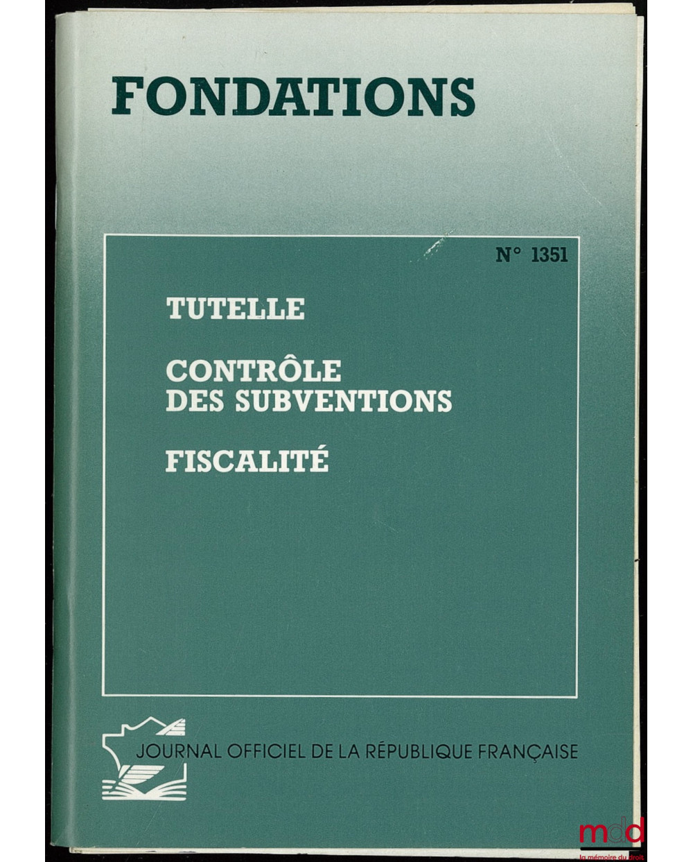 FONDATIONS : Tutelle, Contrôle des subventions, Fiscalité, n° 1351