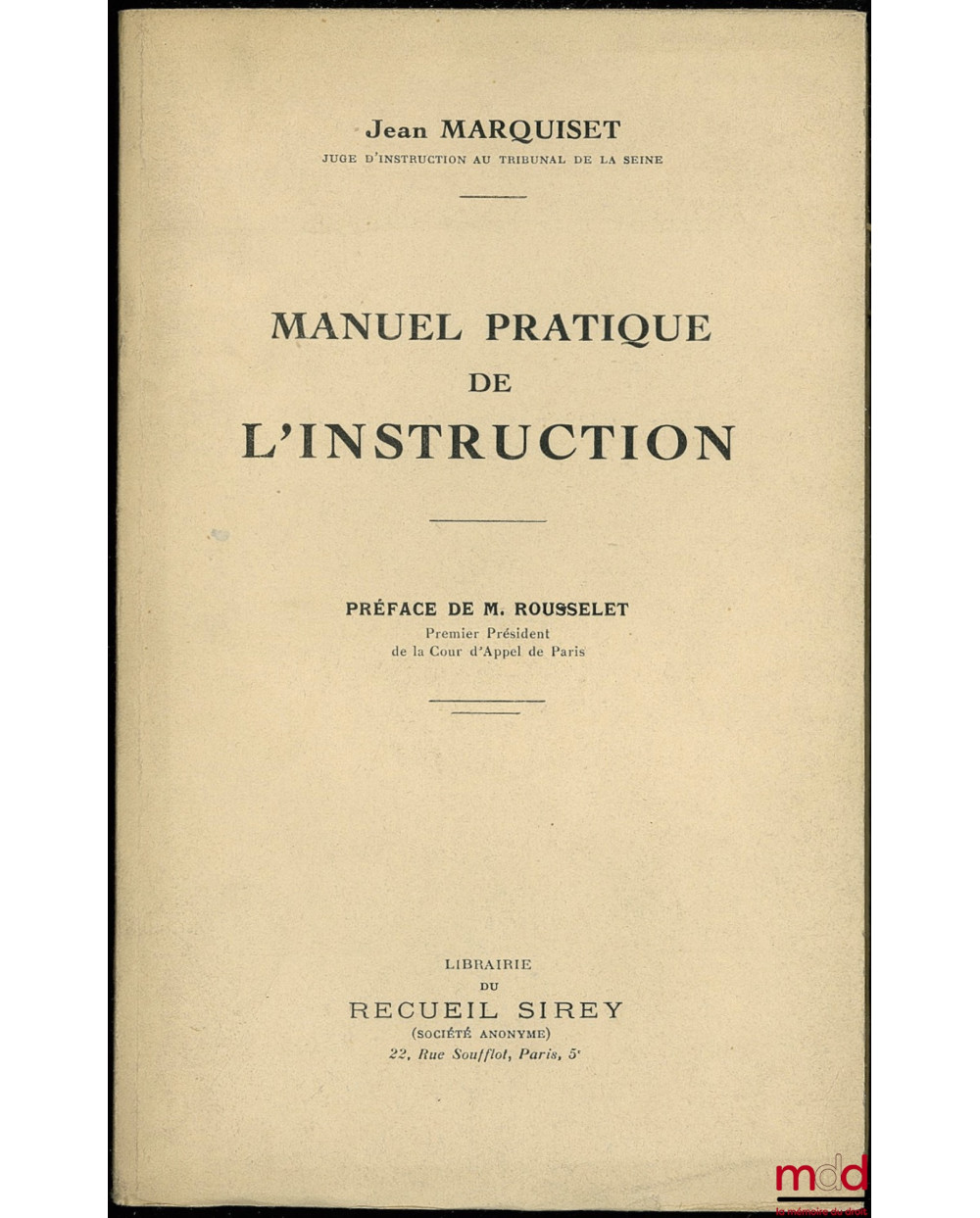 MANUEL PRATIQUE DE L’INSTRUCTION, Préface de M. ROUSSELET