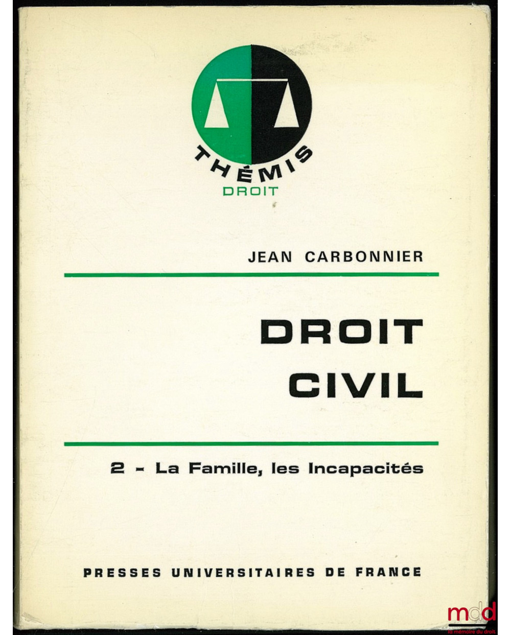 DROIT CIVIL, t. II : LA FAMILLE, LES INCAPACITÉS, 10ème éd., coll. Thémis Droit