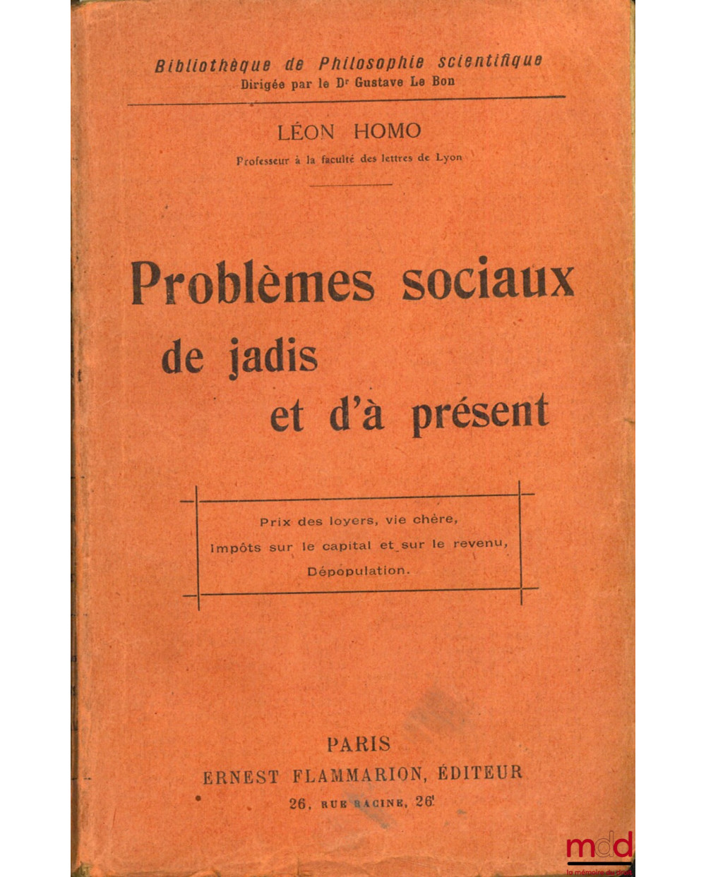 PROBLÈMES SOCIAUX DE JADIS ET D’À PRÉSENT : Crise des loyers, vie chère, impôts sur le capital et sur le revenu, dépopulation, coll. Bibl. de philosophie scientifique