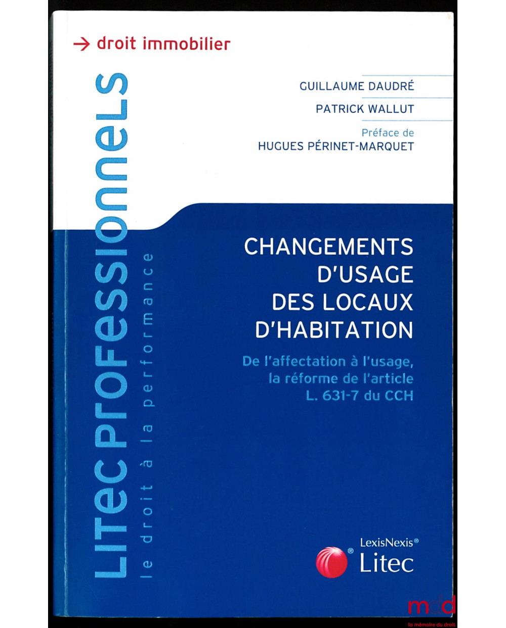 CHANGEMENTS D’USAGE DES LOCAUX D’HABITATION, De l’affectation à l’usage, la réforme de l’article L.632-7 du CCH, Préface de Hugues Périnet-Marquet