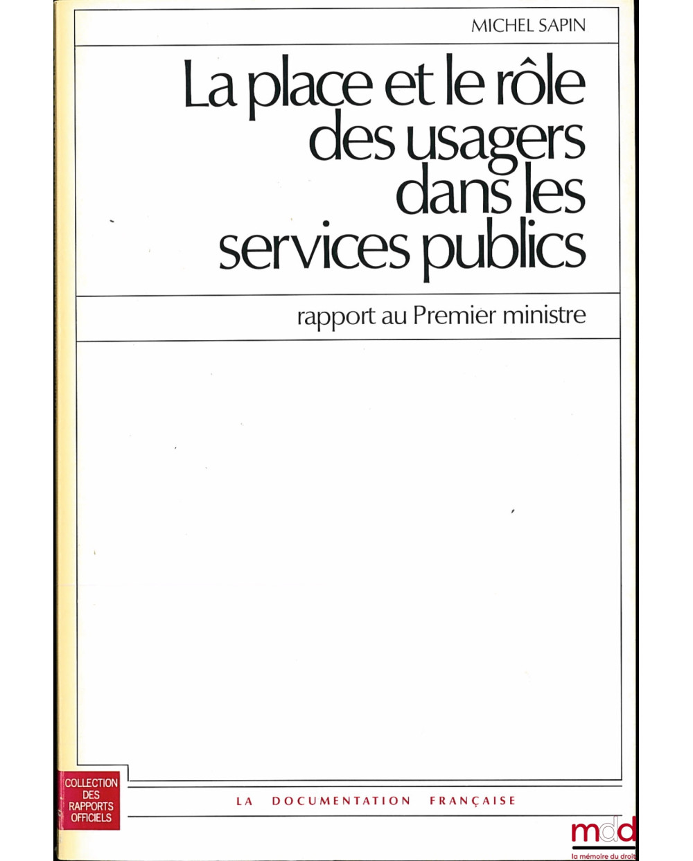 LA PLACE ET LE RÔLE DES USAGERS DANS LES SERVICES PUBLIQUES, rapport au Premier ministre, coll. des Rapports Officiels