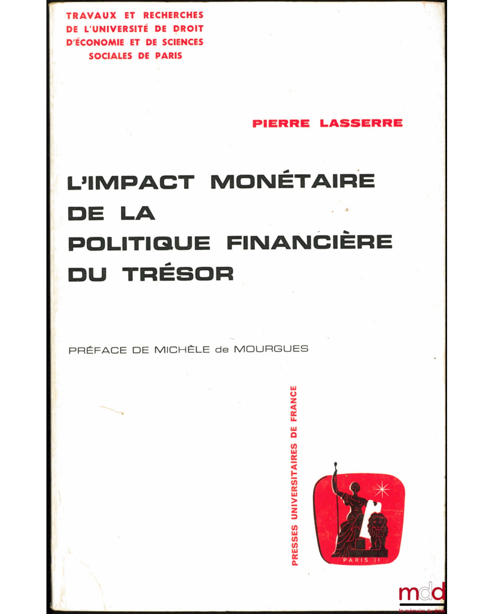 L’IMPACT MONÉTAIRE DE LA POLITIQUE FINANCIÈRE DU TRÉSOR, Préface de Michèle de Mourgues, Travaux et Recherches de l’Université de Droit, d’Économie et de Sciences de Paris