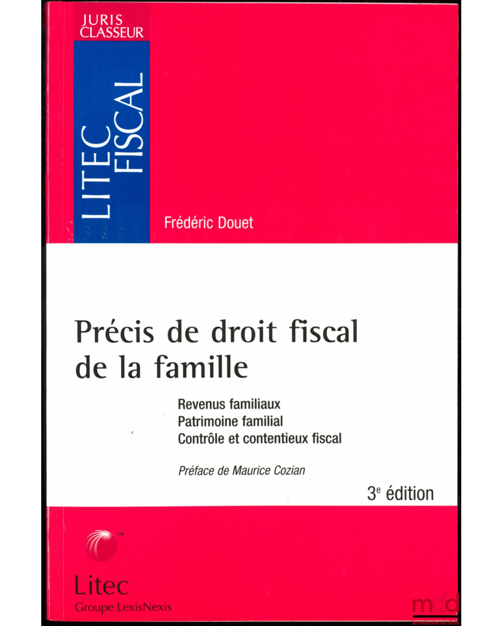 PRÉCIS DE DROIT FISCAL DE LA FAMILLE. Revenus familiaux. Patrimoine familial. Contrôle et contentieux fiscal, Préface de Maurice Cozian, 3ème éd., coll. Litec Fiscal des Juris Classeur