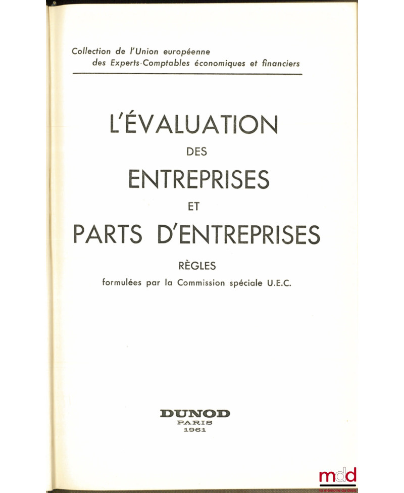 L’ÉVALUATION DES ENTREPRISES ET PARTS D’ENTREPRISES, Règles formulées par la Commission spéciale U.E.C. , coll. de l’Union européenne des Experts-comptables économiques et financiers