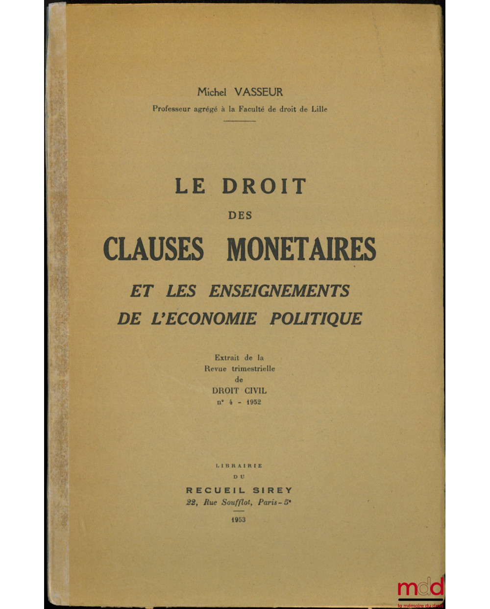 LE DROIT DES CLAUSES MONÉTAIRES ET LES ENSEIGNEMENTS DE L’ÉCONOMIE POLITIQUE, Extrait de la Revue trimestrielle de Droit civil, n° 4 - 1952