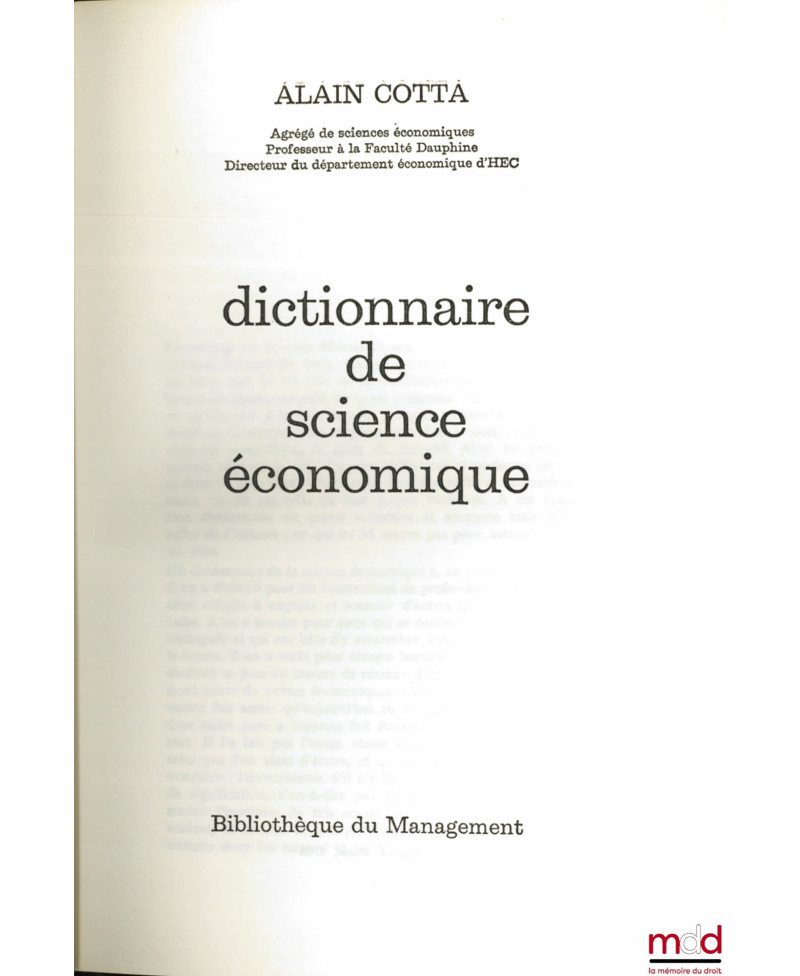 DICTIONNAIRE DE SCIENCE ÉCONOMIQUE, Bibl. du Management, t. 7