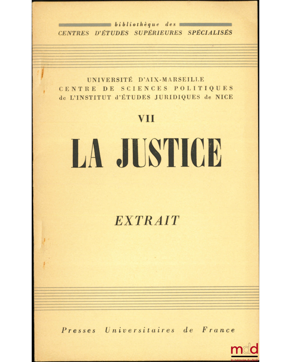 LA FRANCE ET LE GOUVERNEMENT DES JUGES, Extrait de LA JUSTICE, Bibl. des Centres d’Études supérieures spécialisés, t. VII