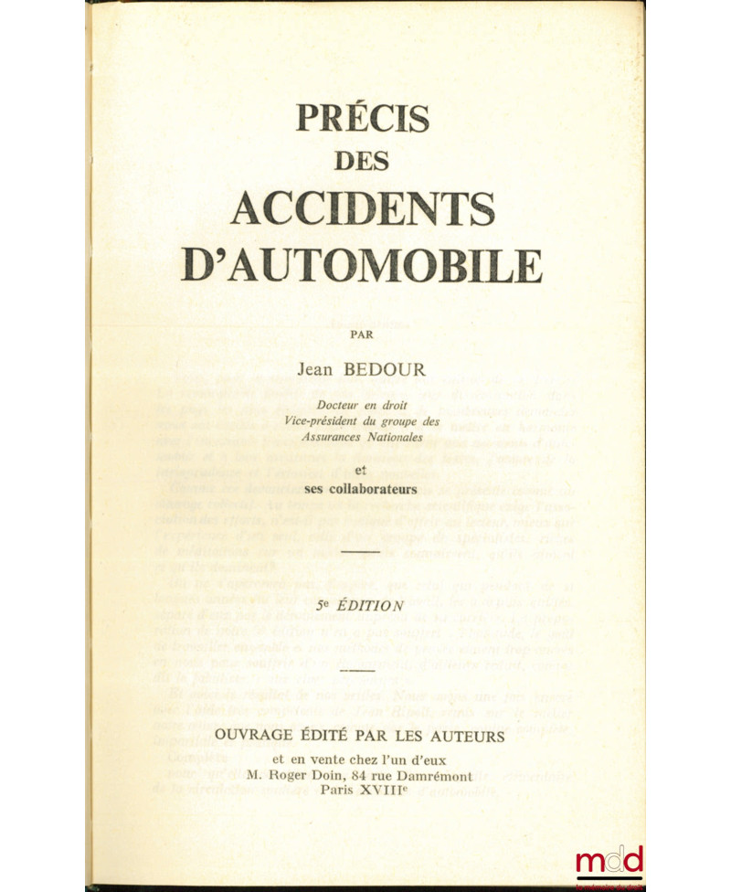 PRÉCIS DES ACCIDENTS D’AUTOMOBILE, 5ème éd.