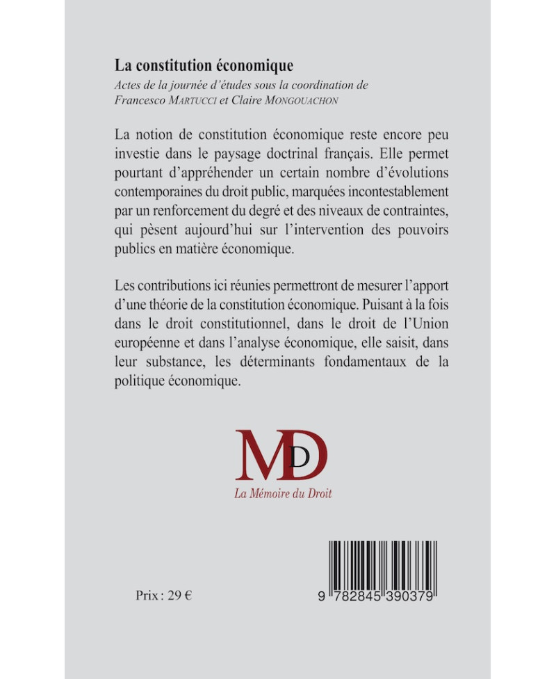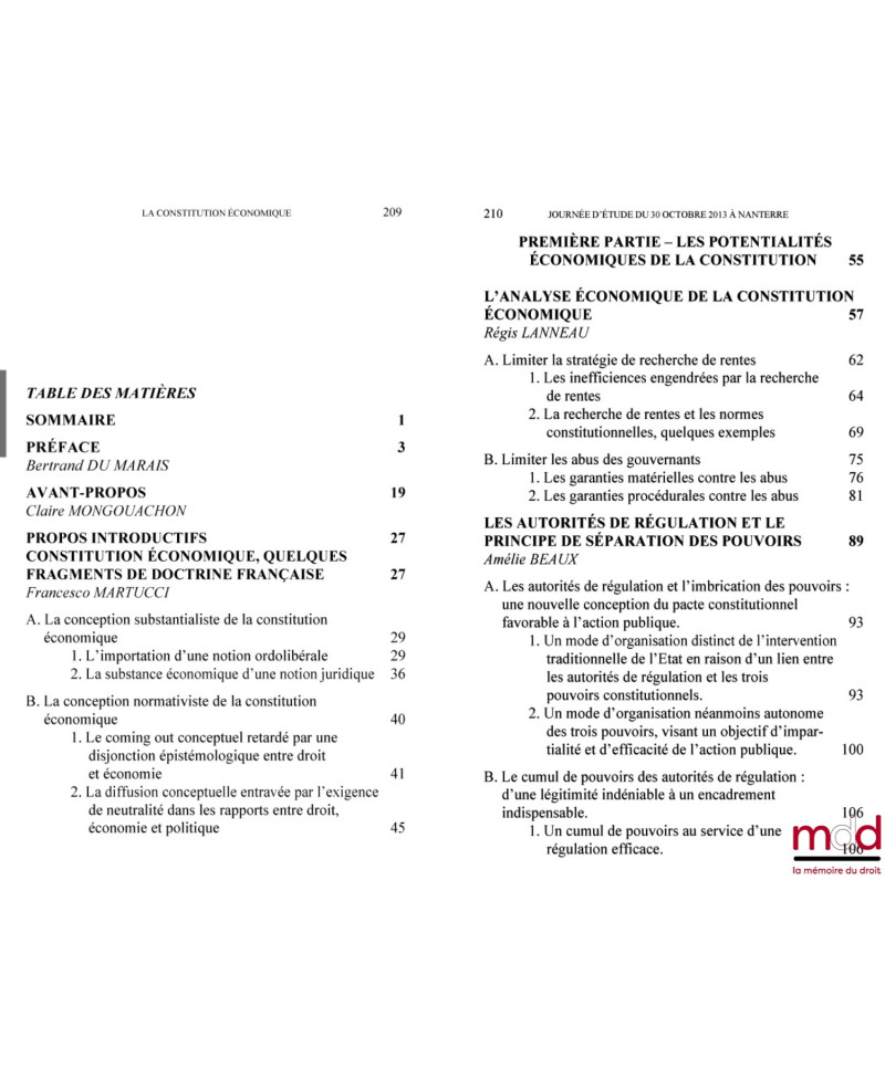 LA CONSTITUTION ÉCONOMIQUEEn hommage à Guy CarcassonnePréface de Bertrand du Marais Avant-propos de Claire MongouachonActes du colloque organisé par le Centre de Recherche sur le Droit Publicde l’Université Paris Ouest Nanterre La Défense