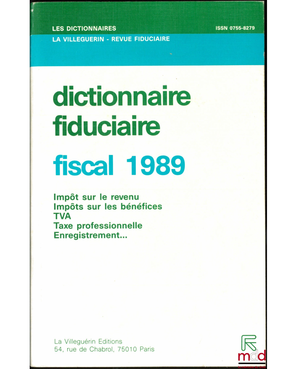 DICTIONNAIRE FIDUCIAIRE - FISCAL 1989 : Impôts sur le revenu - Impôts sur les bénéfices - TVA - Taxe professionnelle - Enregistrement…, 4e éd., coll. Les dictionnaires La Villeguerin - Revue fiduciaire