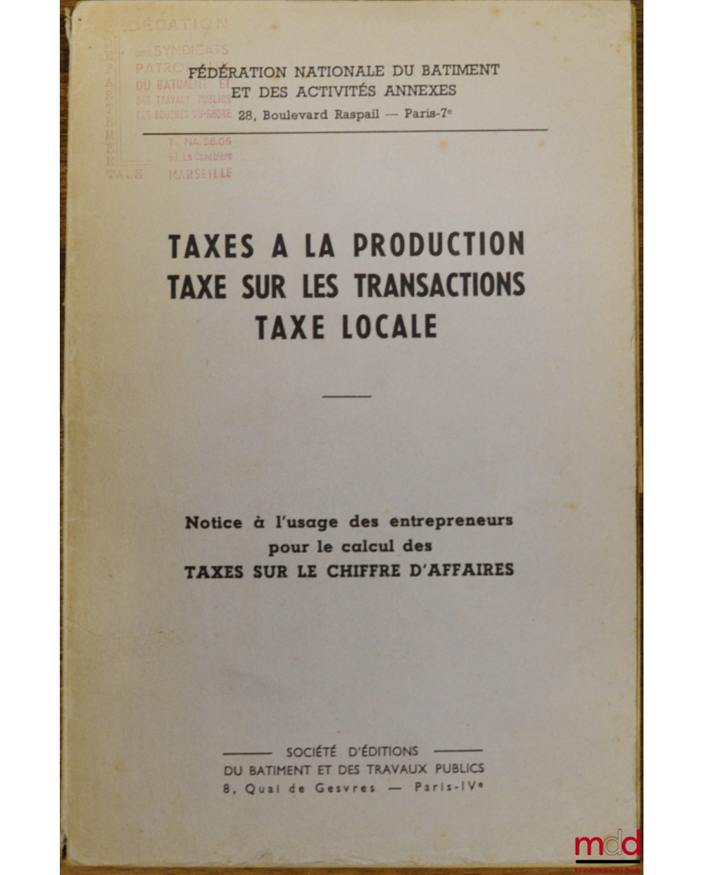 TAXES À LA PRODUCTION, TAXE SUR LES TRANSACTIONS, TAXE LOCALE : Notice à l’usage des entrepreneurs pour le calcul des Taxes sur le Chiffre d’affaires par la Fédération nationale du bâtiment et des activités annexes