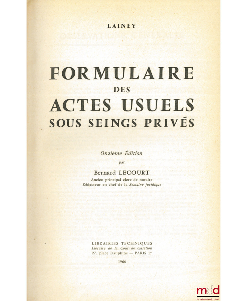 FORMULAIRE DES ACTES USUELS SOUS SEINGS PRIVÉS, 11e éd.