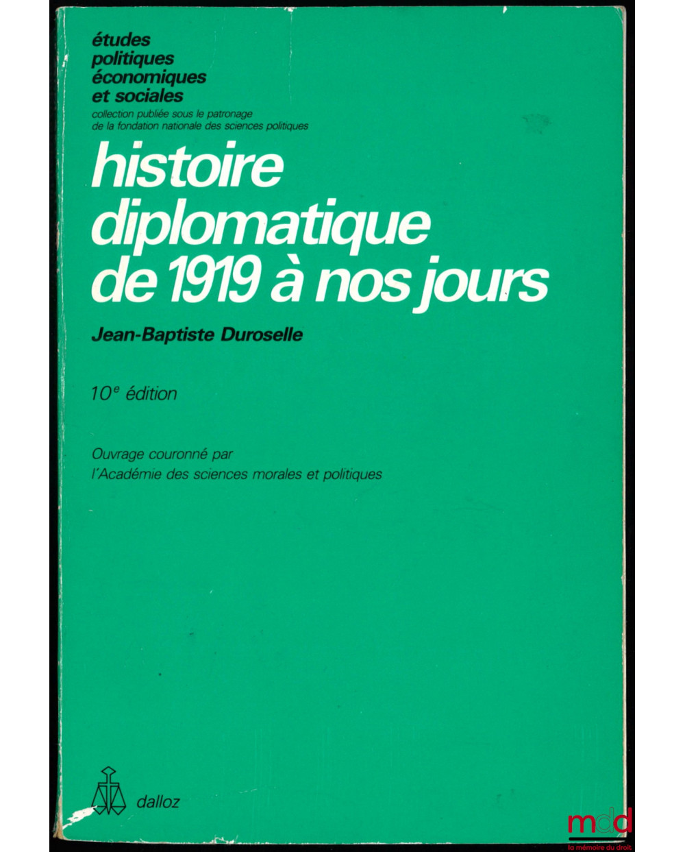 HISTOIRE DIPLOMATIQUE DE 1919 À NOS JOURS, 10e éd., coll. Études Politiques, Économiques et Sociales