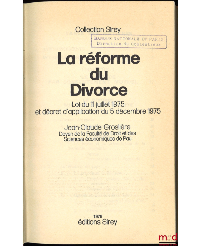 LA RÉFORME DU DIVORCE. Loi du 11 juillet 1975 et décret d’application du 5 décembre 1975