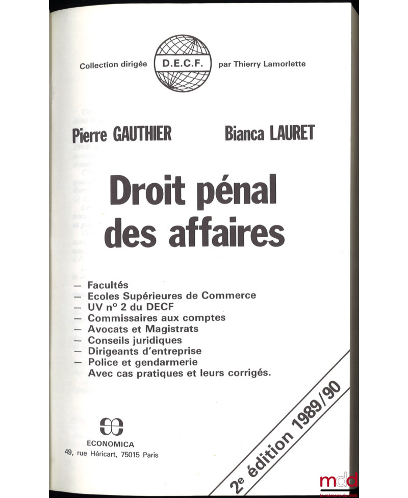 DROIT PÉNAL DES AFFAIRES, coll. D.E.C.F., U V n° 2, avec cas pratiques et leurs corrigés, 2ème éd.