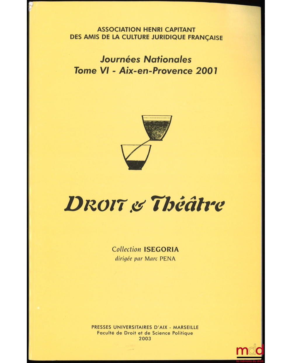 DROIT ET THÉATRE, Journées nationales, tome VI / Aix-en-Provence 2001, coll. ISEGORIA