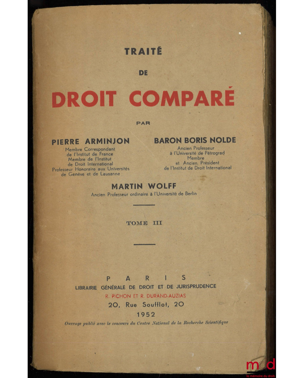 TRAITÉ DE DROIT COMPARÉ, t. III [uniquement]