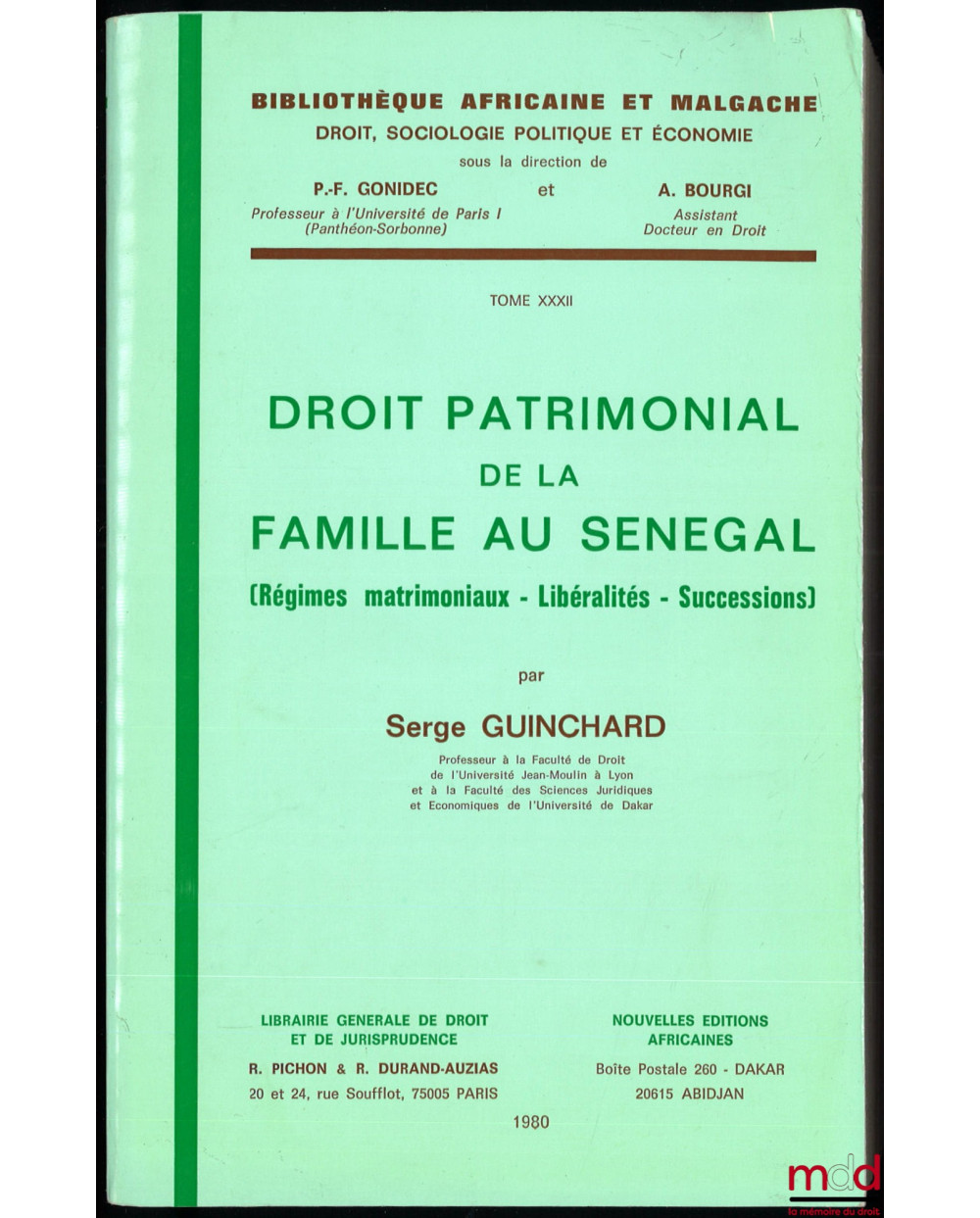 DROIT PATRIMONIAL DE LA FAMILLE AU SÉNÉGAL (Régimes matrimoniaux – Libéralités – Successions), Bibl. africaine et malgache, t. XXXII