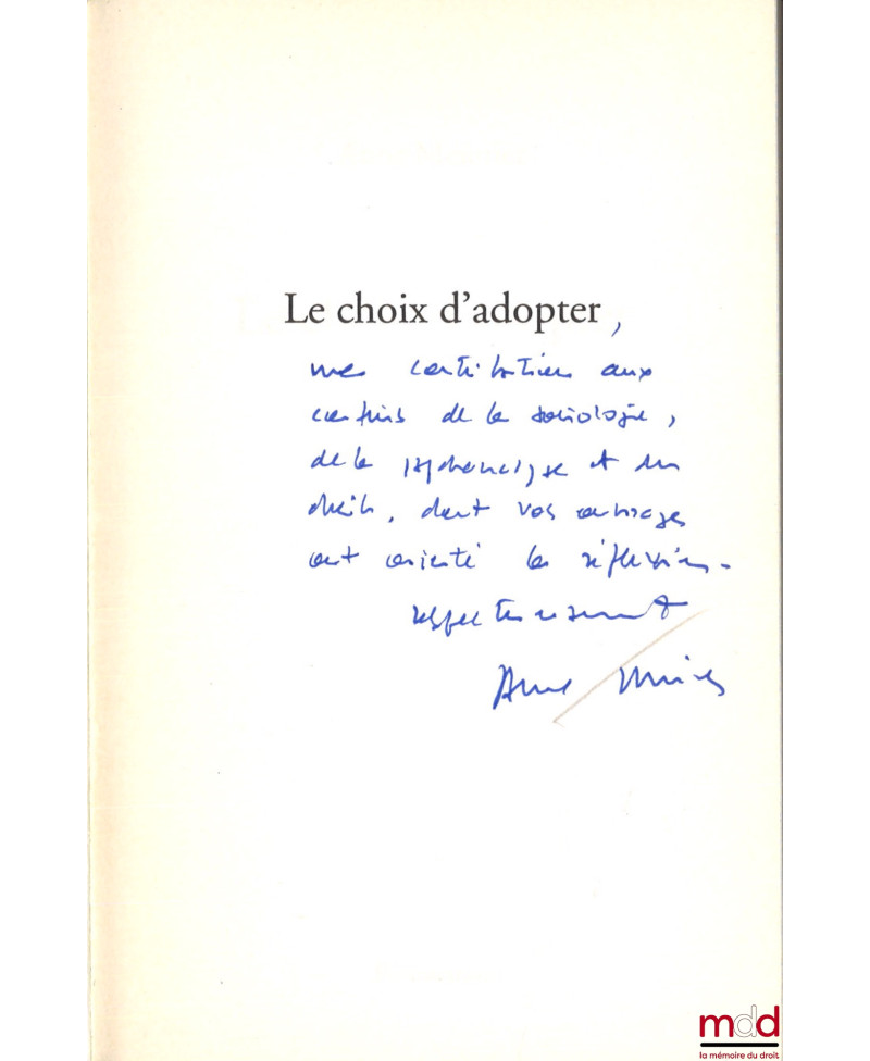L’auteur, psychologue-psychanalyste au service des adoptions du Conseil général de l’Isère, a souhaité apporter sa « contribution aux confins de la sociologie, de la psychanalyse et du droit ».