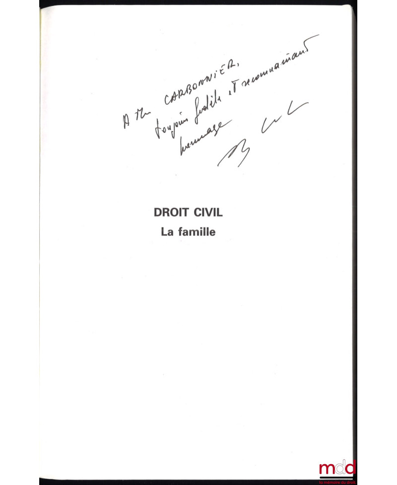 - in-8, br., ENVOI DE L’AUTEUR, très bon état, [Cet ouvrage provient de la bibliothèque personnelle du professeur Jean Carbonnier (1908-2003)], 582 p.