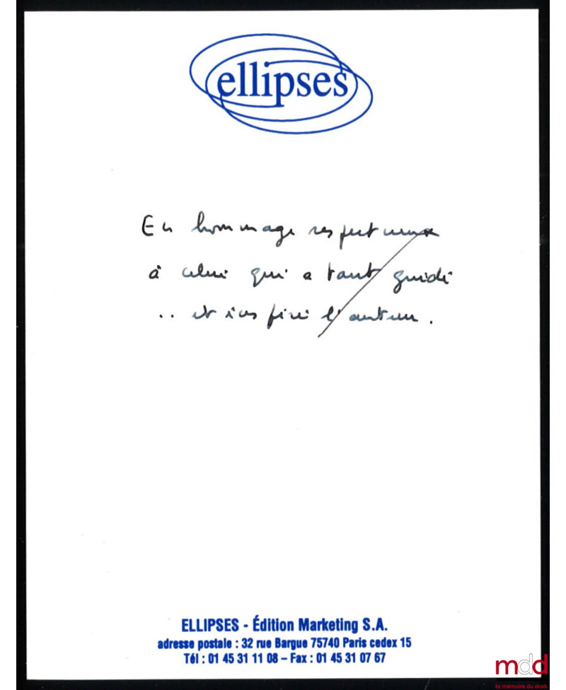 Description : in-8, br., carte avec ENVOI DE L’AUTEUR, (couv. lég. passée), bon état, [Cet ouvrage provient de la bibliothèque personnelle du professeur Jean Carbonnier (1908-2003)], 302 p.