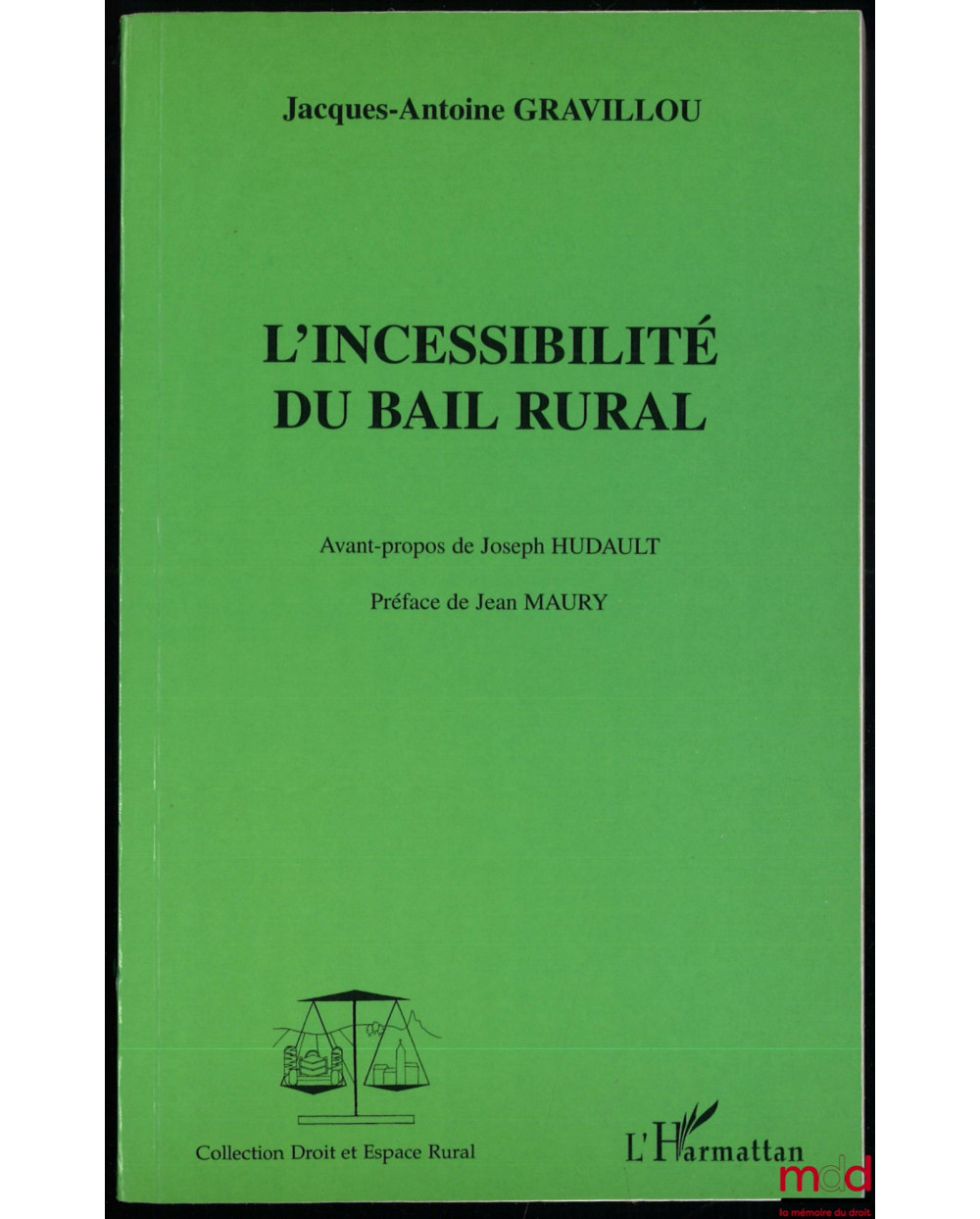 L’INCESSIBILITÉ DU BAIL RURAL, Avant-propos de Joseph Hudault, Préface de Jean Maury, coll. Droit et Espace Rural