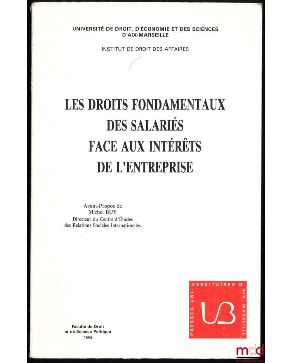 LES DROITS FONDAMENTAUX DES SALARIÉS FACE AUX INTÉRÊTS DE L’ENTREPRISE, Avant-propos de Michel Buy
