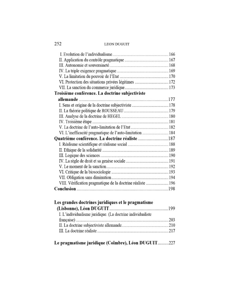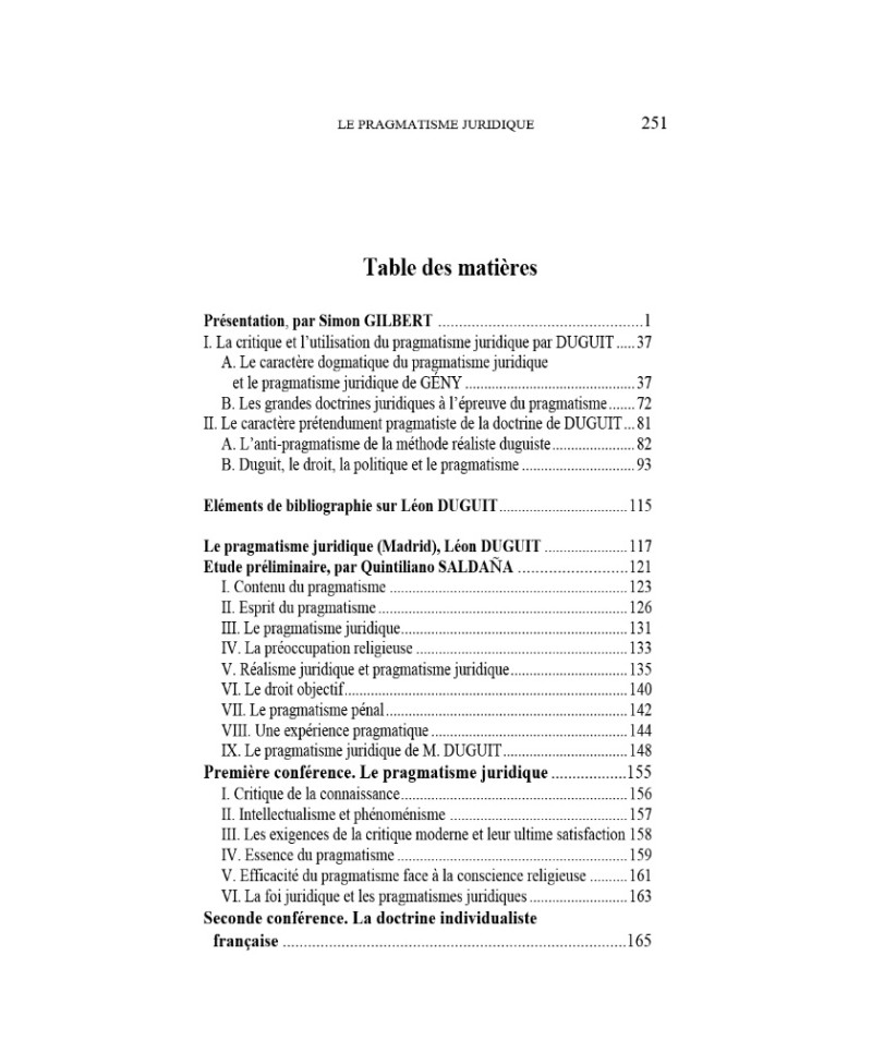 Phénomène rarissime dans la doctrine juridique française que celui de la découverte de textes inédits dans l’œuvre d’un auteur majeur.C’est pourtant bien cela que propose cet ouvrage qui présente des conférences prononcées par Léon Duguit dans des facultés espagnole et portugaises. Si elles firent, à cette époque, l’objet de transcriptions en espagnol, leur texte ne fut pour l’essentiel pas publié en Français.Ces conférences ne sont pas seulement inédites, elles sont de surcroît essentielles dans l’œuvre de Duguit. Il s’agit en effet du seul texte du doyen bordelais analysant le pragmatisme juridique qui se répandait alors depuis les universités anglaises et américaines vers celles de l’Europe continentale, et également du seul texte dans lequel il confronte sa doctrine à ce nouveau courant de pensée.Ces textes sont caractéristiques du dernier Duguit, volontiers intransigeant et n’hésitant pas à exposer à de multiples reprises des idées assez proches, pour se faire mieux comprendre.Mais, à l’heure où le pragmatisme américain retrouve, par le vecteur des « law and economics », une nouvelle vigueur, cette critique radicale et salutaire d’un vieux maître se doit d’être enfin mise à la disposition du public.Simon Gilbert, qui a traduit et présenté ces conférences, est Maître de conférences en droit public à l’Université de Paris-Est et membre de l’équipe de recherche en droit des marchés et contrats publics de cette Université.